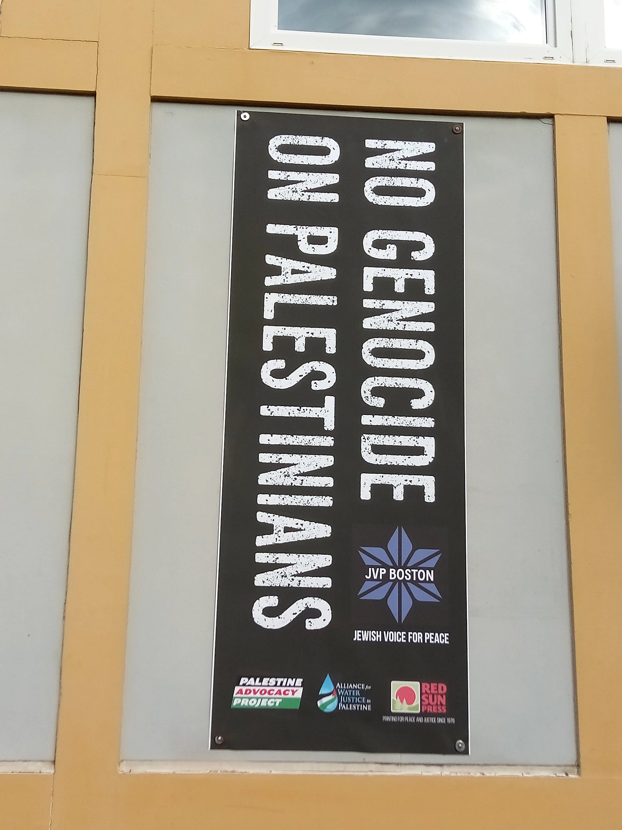 Sign in Boston, MA... November 12, 2023 Pam Rogers This sign is in front of Red Sun Press where the Alliance has our banners, yard signs, and leaflets made.
