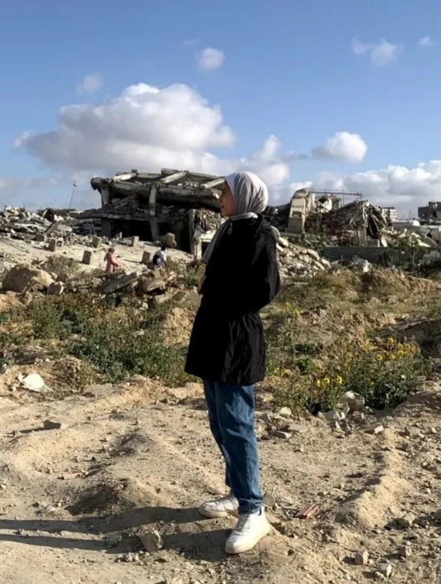 I met Dunya Ashour, 19, when she was taking some photos of the destruction of the New Ajjami Mosque.