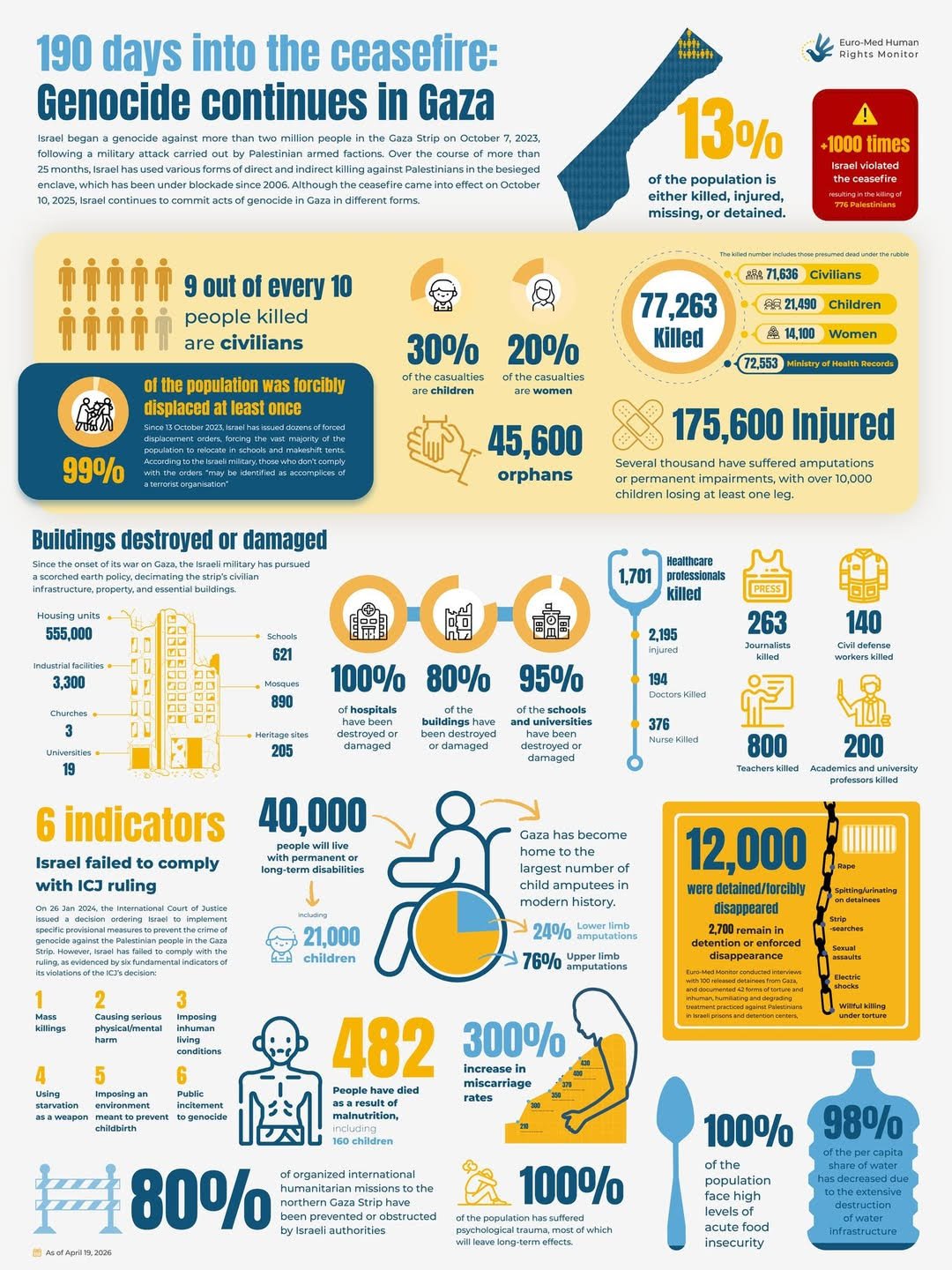 190 days into the ceasefire: April 21, 2026 Pam Rogers This chart is produced by the Euro-Med Human Rights Monitor.