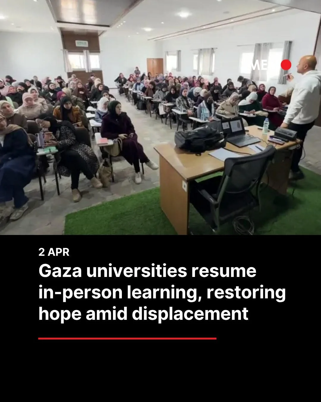 Hundreds of university students in the Al-Mawasi area of Khan Younis have begun attending in-person classes for the first time since the start of the conflict, in Gaza City, Palestine, on March 31, 2026. [Screengrab/Anadolu Agency]